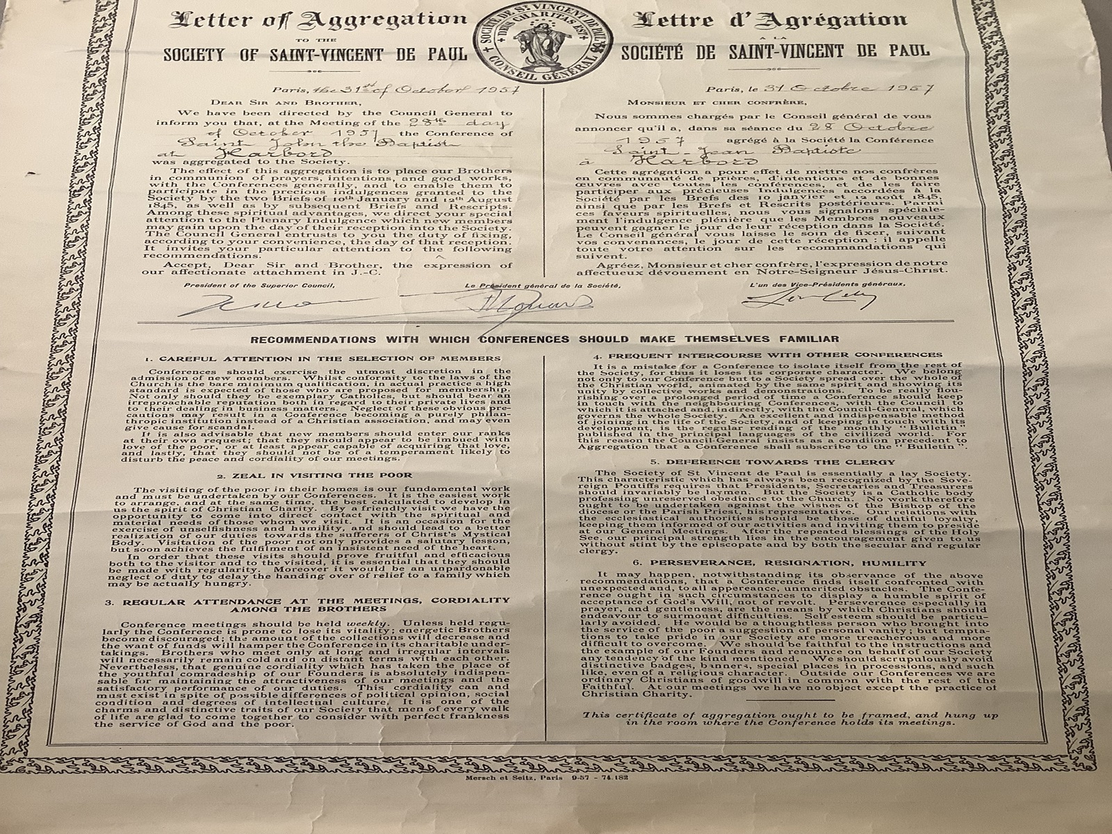 Harbord Conference was formed on 28 October 1957. A quick look at the Letter of Aggregation shows it is in English and French.