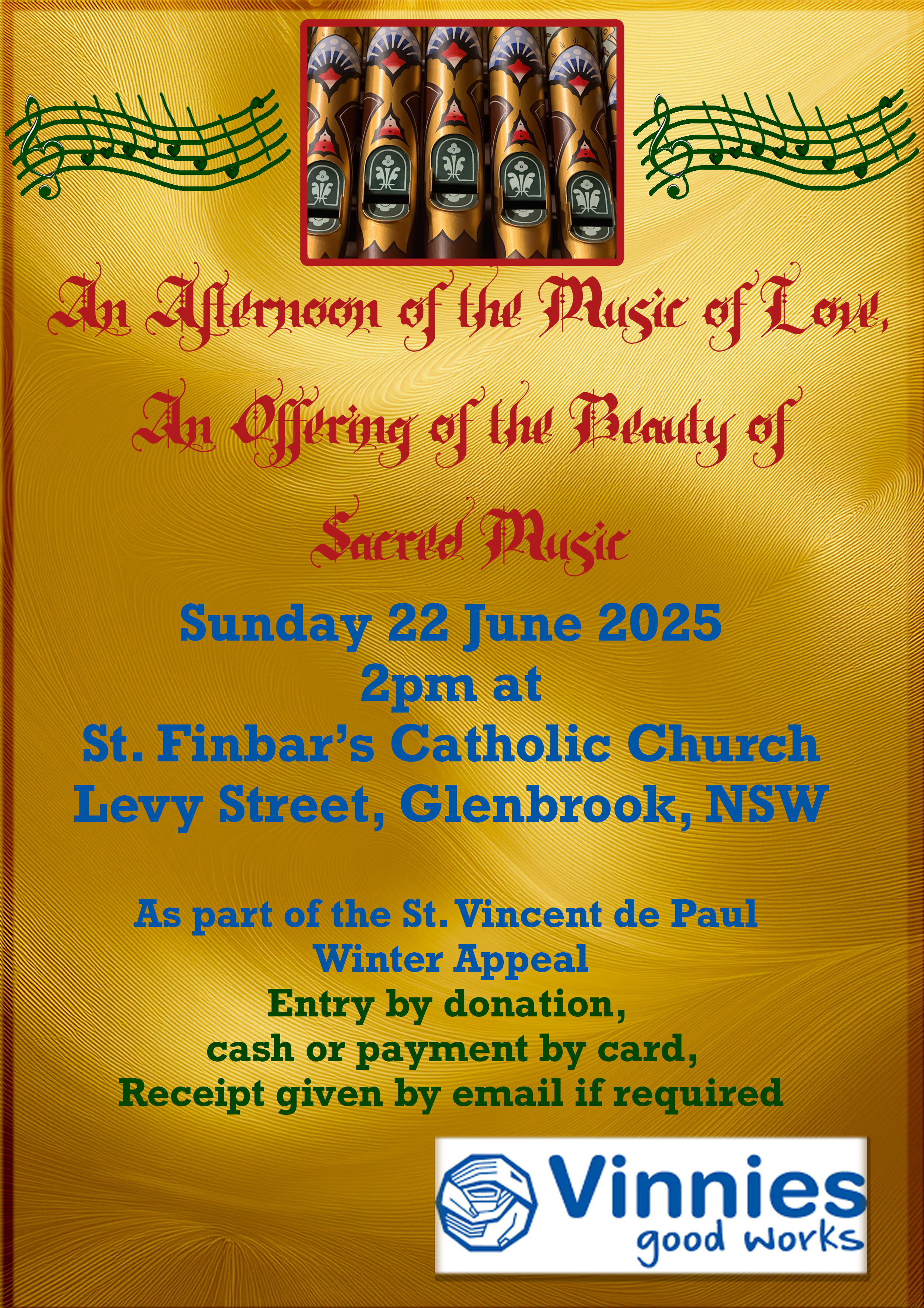 This special concert is part of the St Vincent de Paul Winter Appeal, supporting those in need during the colder months.